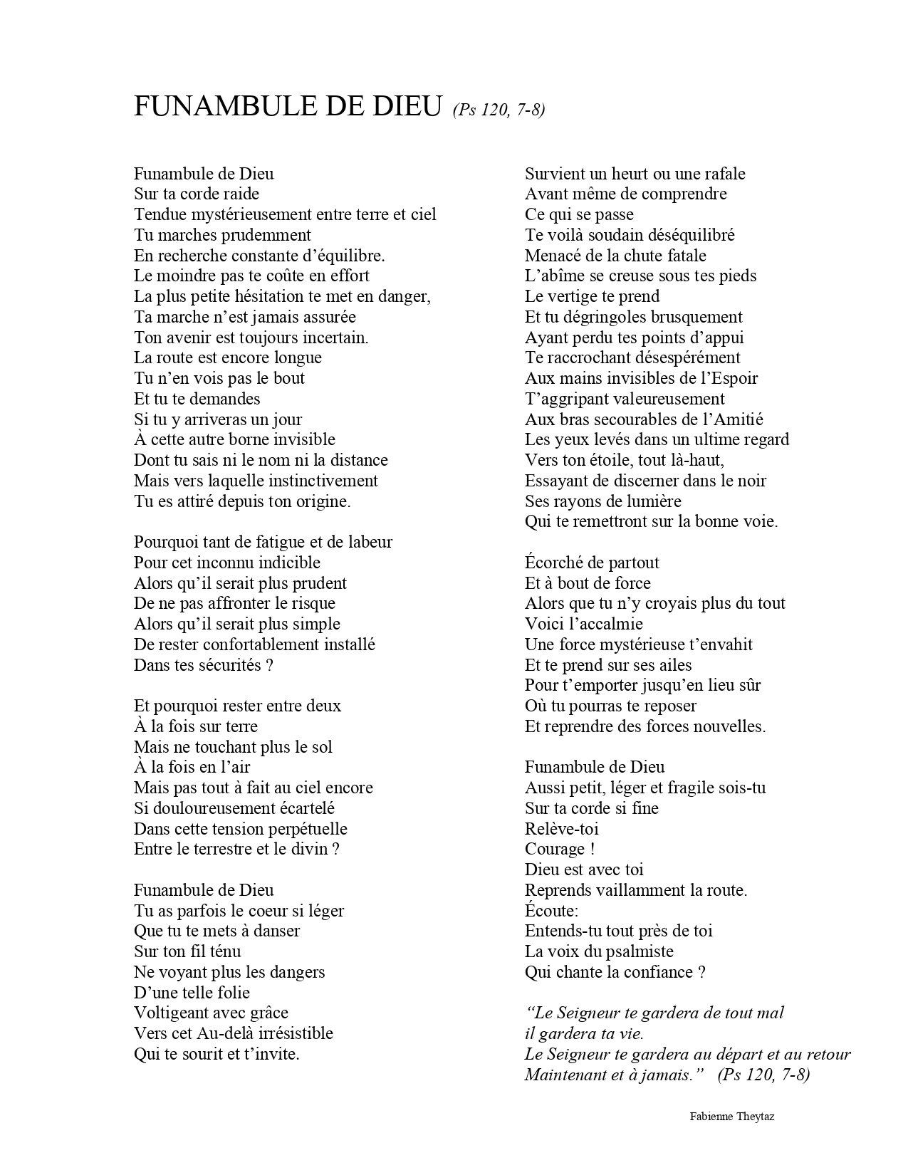 Funambule de Dieu – Psaume 120 revisité